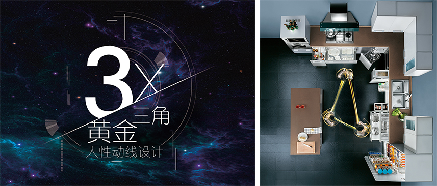 多年來,無數(shù)次的試驗 讓我們有了一個絕妙的發(fā)現(xiàn) 烹飪時,收納、洗理、烹飪、備餐四大功能區(qū) 與用戶人體特點、烹飪流程和餐具使用頻率 恰好形成直角或等腰黃金三角動線 在明顯提高烹飪效率的同時 更是決定櫥柜效能和提升烹飪樂趣的關(guān)鍵 |