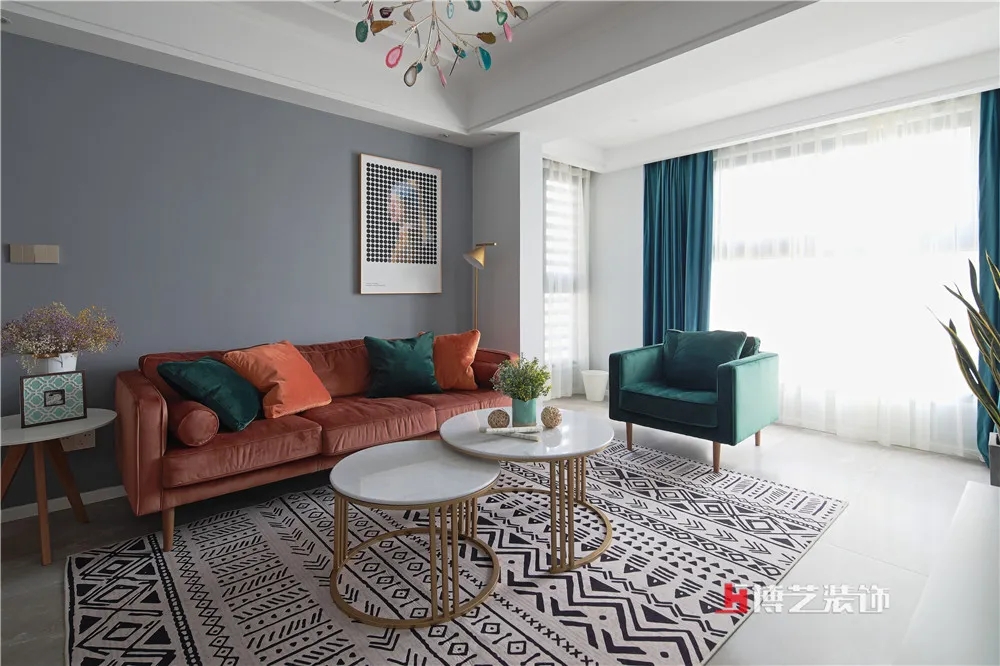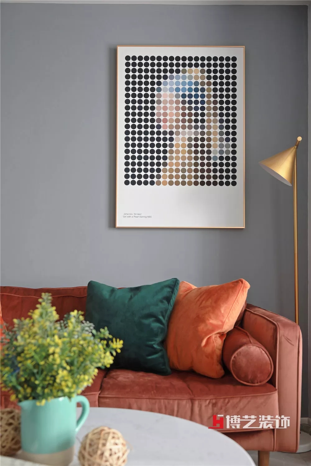 橙色絲絨沙發(fā)給你一股天生貴氣,在濃濃的北歐風(fēng)上增添了一絲輕奢活力的味道。
