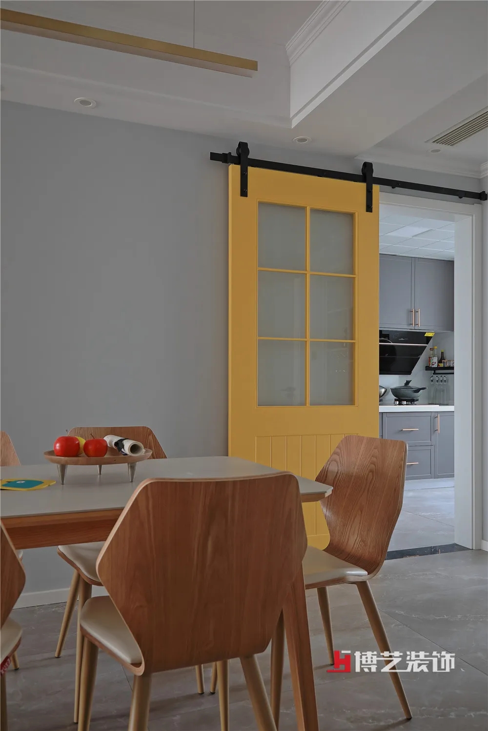 看慣了廚房推拉門(mén),一道亮黃色的谷倉(cāng)門(mén)設(shè)計(jì),不僅提升了餐廳幾個(gè)色號(hào),顏值也讓人怦然心動(dòng),怎么能不被他圈粉?
