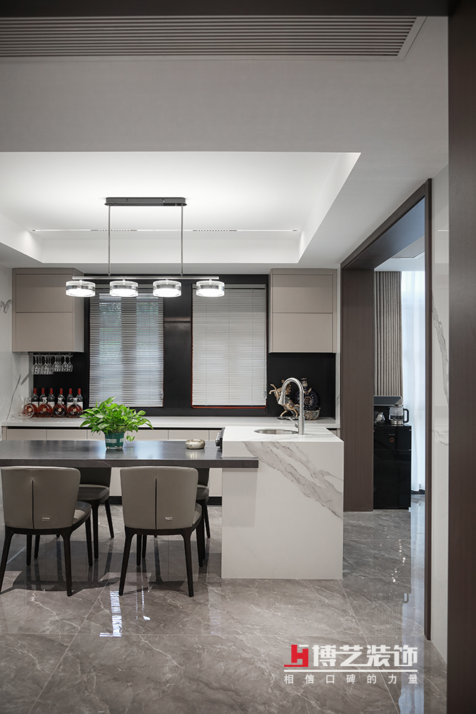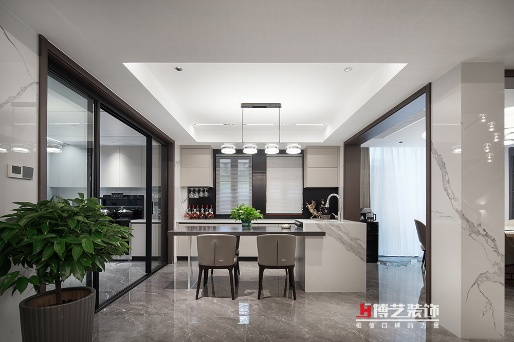 開放式的島臺作為廚房和餐廳之間的過度,也保留了西廚的使用功能。