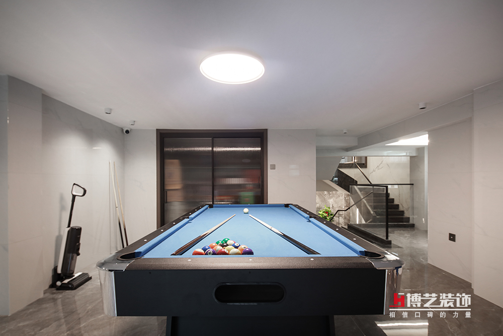 地下室主要規(guī)劃成了一家人的休閑空間,影視廳,臺球室,水吧臺,所有的休閑娛樂設(shè)施應(yīng)有盡有,滿足了全家人的休閑時(shí)光。