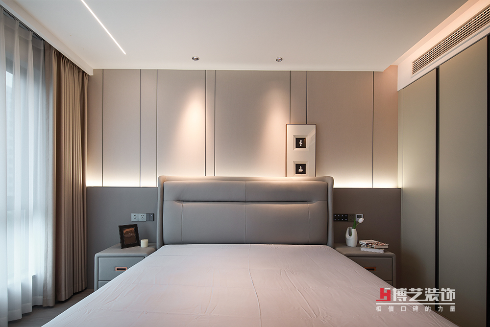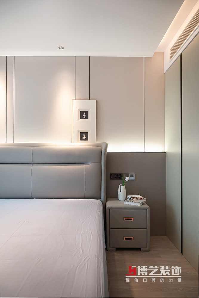 主臥采用了套間的設計,延續(xù)了整個家的風格,讓整個房子更加統(tǒng)一。高級灰的床品,整個視覺觸感都讓人全身心放松。