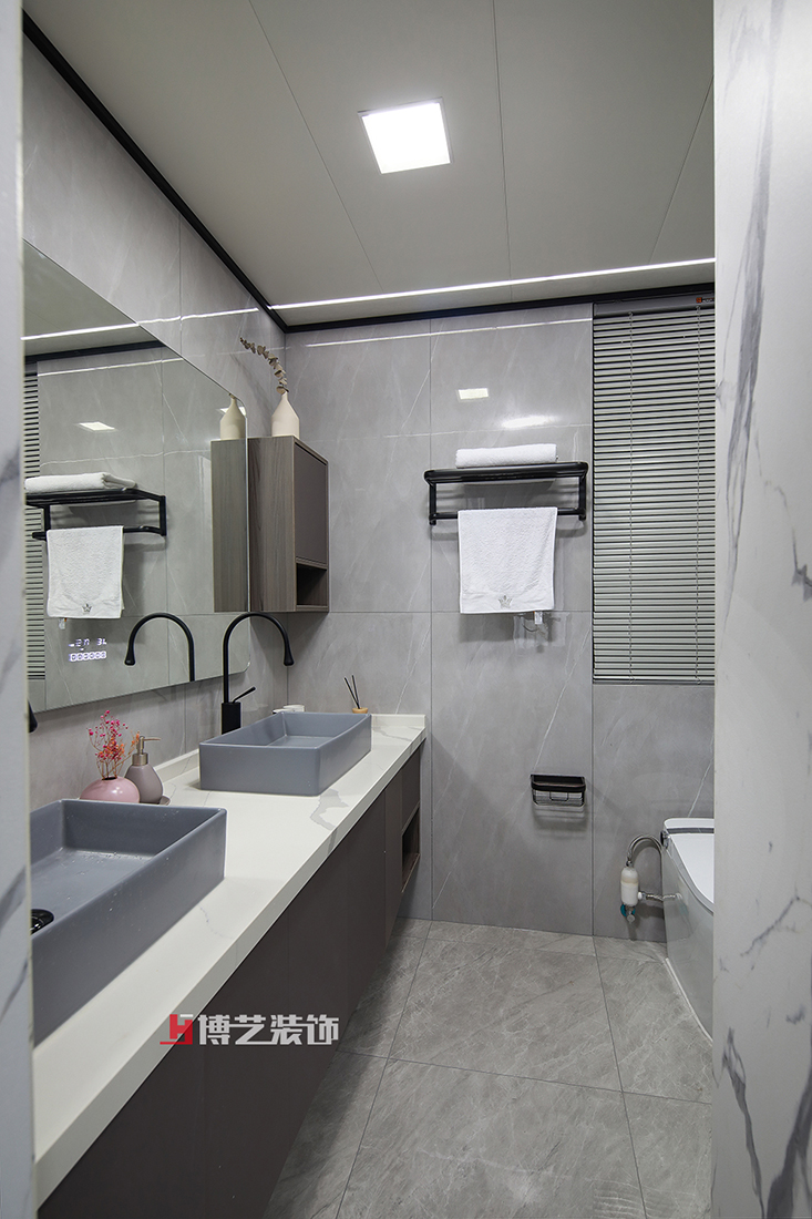 衛(wèi)生間雙臺盆的設(shè)計讓早晨匆忙的時間不再為洗漱而浪費(fèi)。