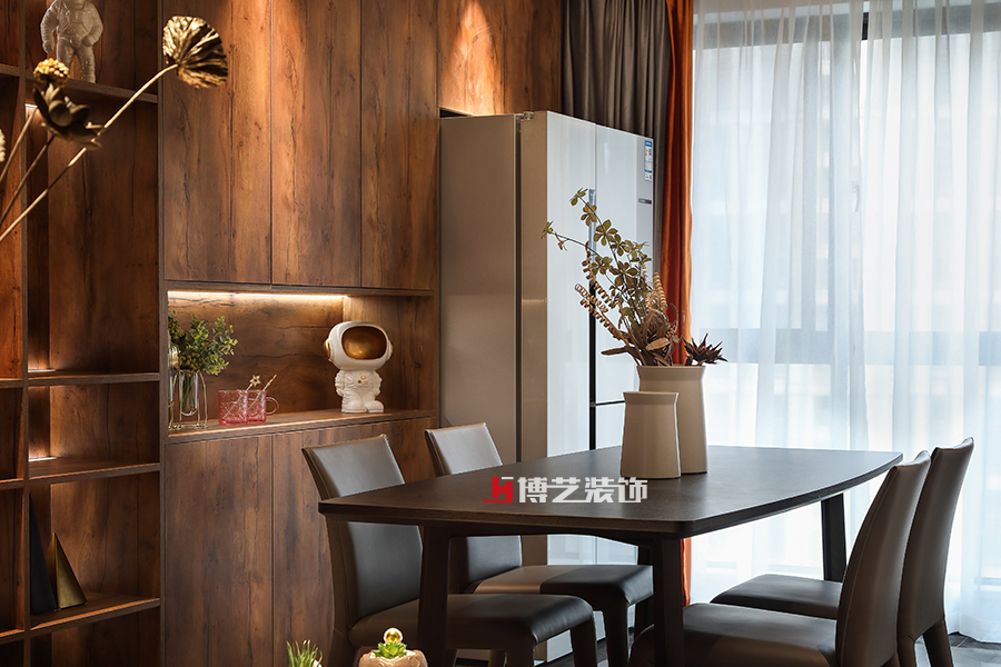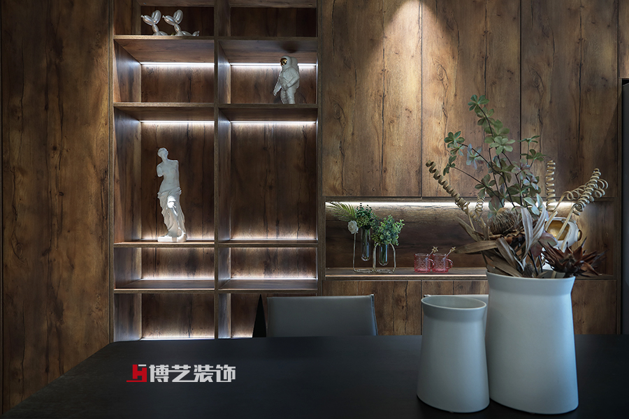 于是,空間的立面廚柜成了生活零碎的無(wú)限收納,也是品質(zhì)生活的整潔,更是約束與自在的契合。
