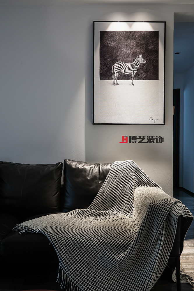 粘土黃的抱枕像塊非洲陸地,墻上一只黑白條紋斑馬在畫像停駐。