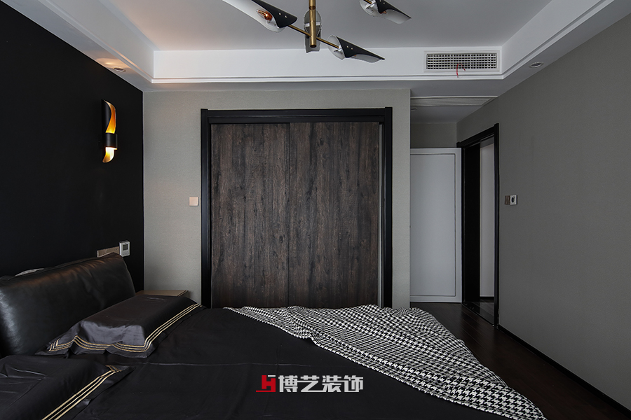 灰黑色皮質(zhì)靠枕大床,奢華不張揚(yáng)。