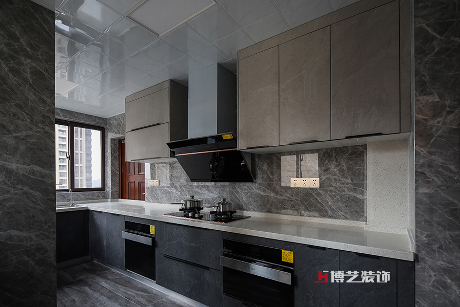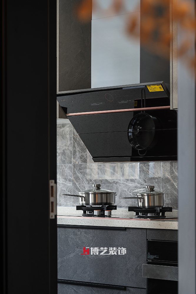 灰白的巖板系飾面的廚房柜面,冷峻不失風(fēng)度,低調(diào)不失奢貴,是巧意的點(diǎn)綴,更是自信的鋪排。
