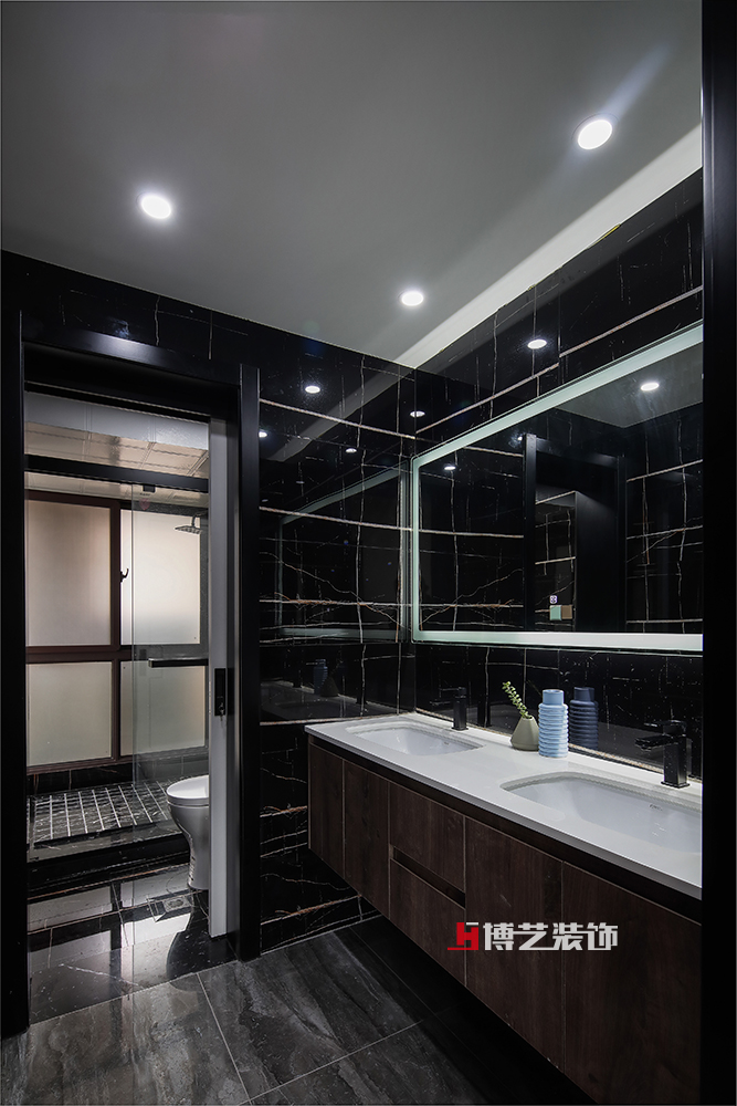 亮白色巖紋里透著黑色沉積煅燒紋,風(fēng)格依舊凜冽,空間開始明亮寬敞,那是海上的白色礁石,短暫的憩息里有天際的遼闊。