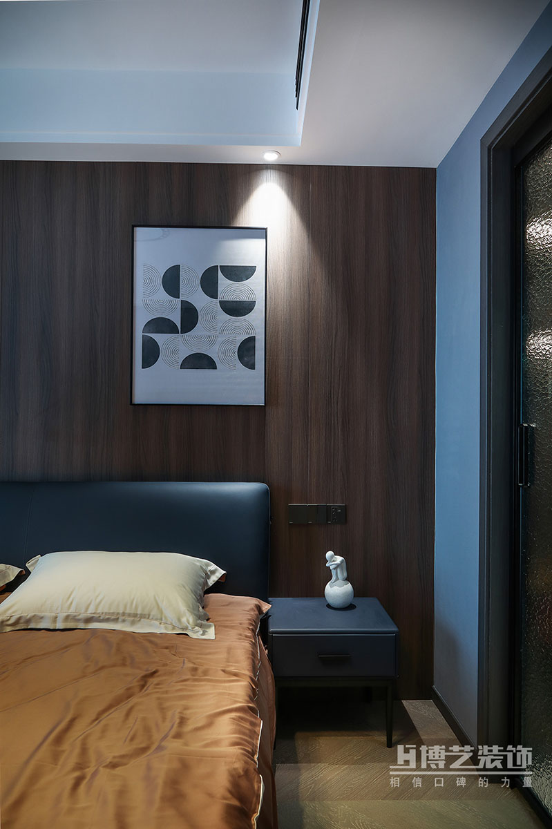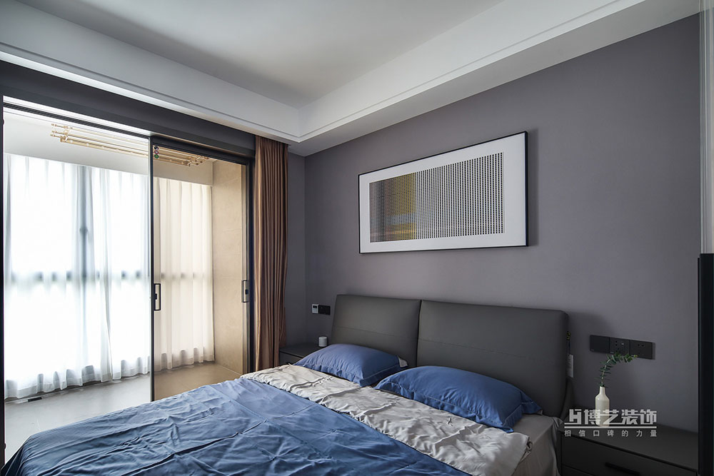 霧霾藍(lán)打造的這片空間安靜、寧和,讓藍(lán)色的色彩魅力充分蔓延。