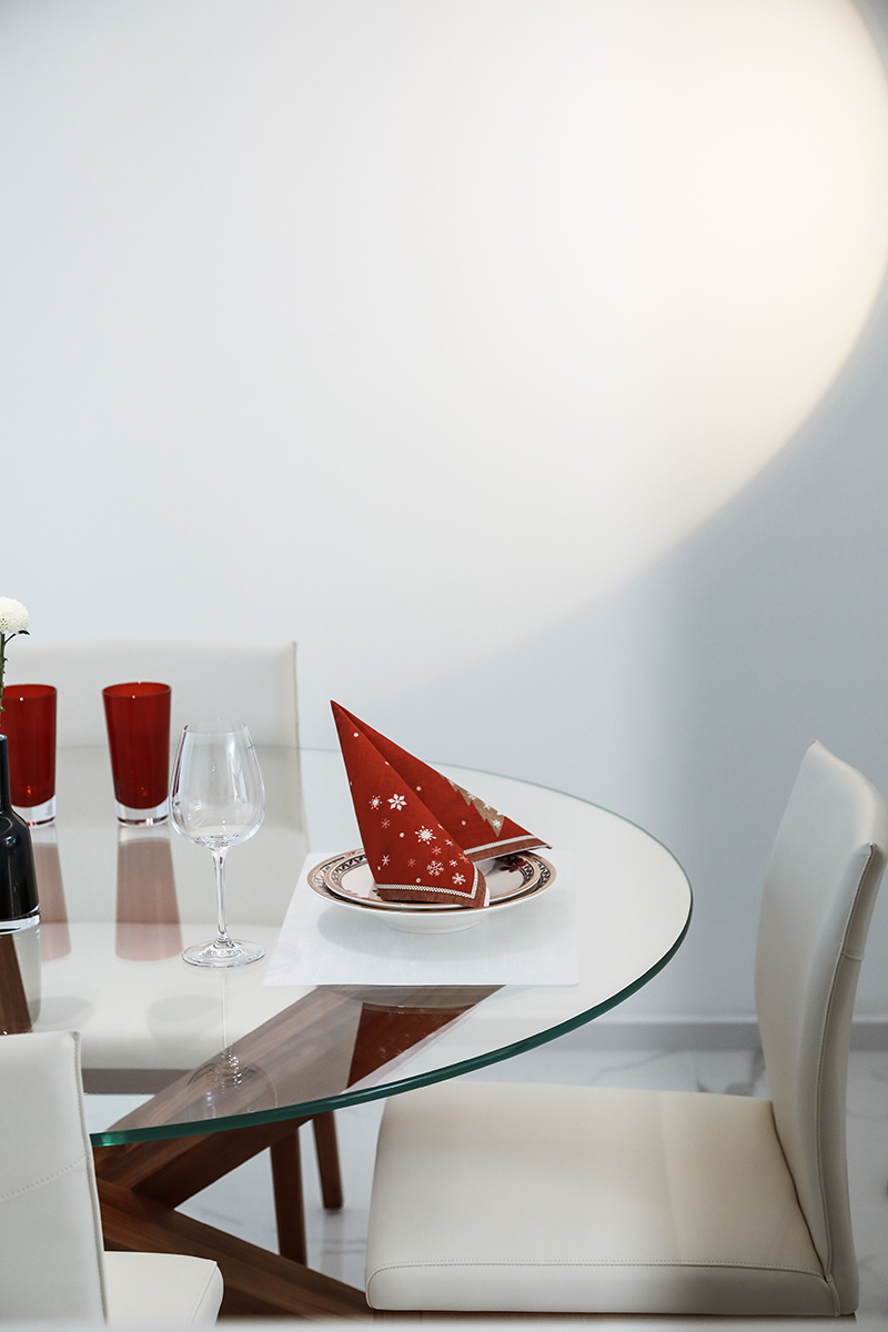 耀眼的紅色與純白的空間共鳴,把陽(yáng)光帶來(lái)放在墻上,生活的儀式感化為具象,美好的流連著駐足。