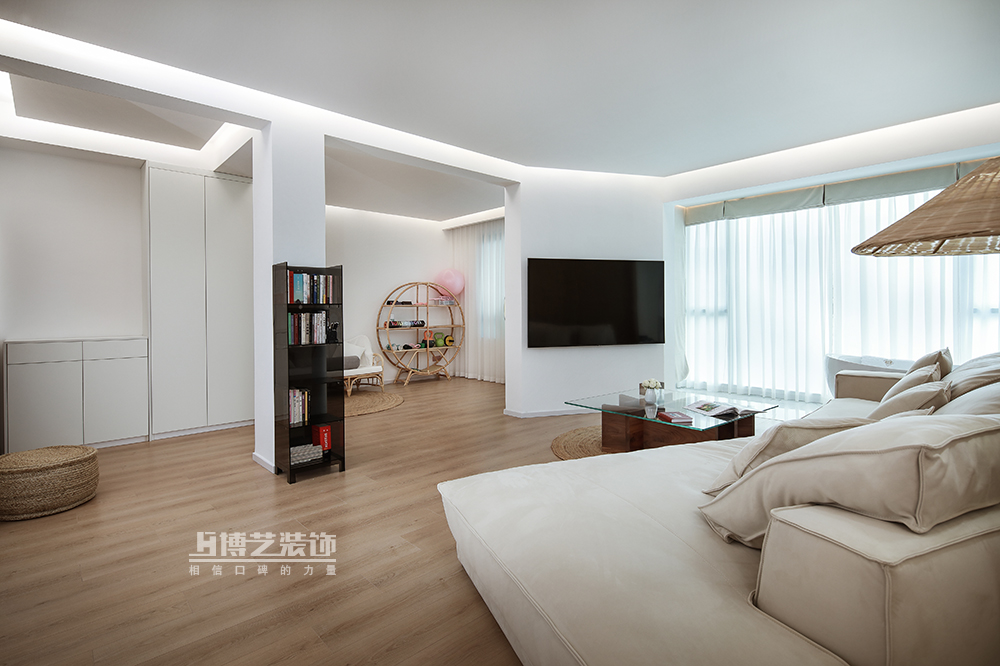 白色,素雅,空靈而迷人,大面積的白色,通鋪延展的木地板,帶來(lái)了空間里的溫暖,搭配氣質(zhì)滿(mǎn)分的軟裝,在細(xì)節(jié)處勾勒精致的生活意趣,打造一方安逸舒心的美學(xué)空間。