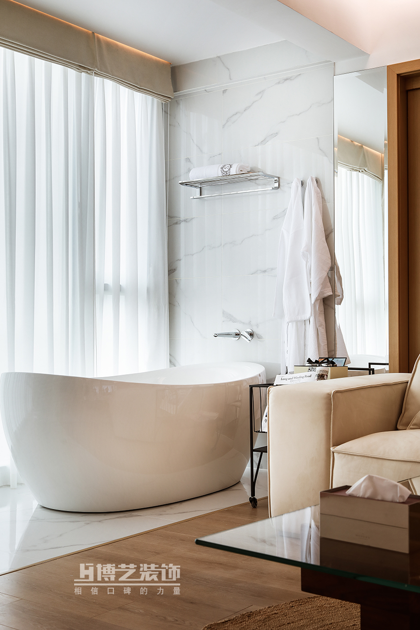 臨床落地的大浴缸,通透感十足,在繁忙了一天的辛勞之后 ,盡情享受舒適的愜意,切換慢節(jié)奏自在度假時(shí)光。
