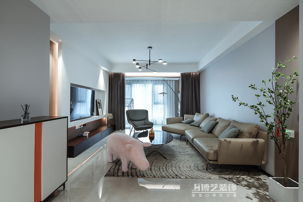 本案是一套四口之家的改善型新居,設(shè)計師將風(fēng)格定義為低調(diào)卻不失品質(zhì)的現(xiàn)代風(fēng),整體以白色為主基調(diào),搭配造型簡約,現(xiàn)代感的家具以及優(yōu)雅大氣的軟裝配飾,整體營造出一種時尚,現(xiàn)代感極強的空間氛圍。