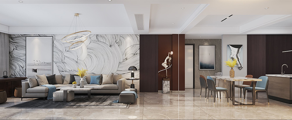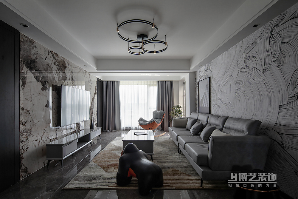 石材、木質(zhì)、皮革、針織在這個(gè)靜謹(jǐn)?shù)目臻g互為搭配,營造空間遼闊而舒適的時(shí)光深度。線條勾勒的美妙的畫卷是大自然對藝術(shù)最質(zhì)樸的表達(dá),是家的溫度與家人的親密時(shí)光。