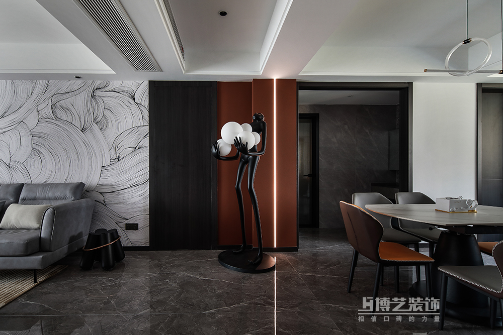 餐廳是家中不需要刻意營造就足夠溫情的空間,美食便是我們情感溝通交流最好的媒介,在暗色系的氛圍渲染中,清疏佳肴散發(fā)的人間煙火氣顯得別樣生動(dòng)溫馨。