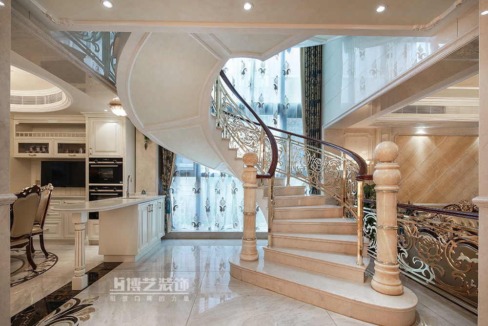 拾級而上,法式的優(yōu)雅與富麗在一步一移中慢慢展現(xiàn),把人引向高處的空間。