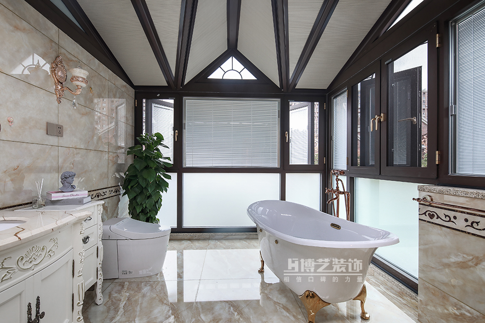 高挑的頂面,臨窗而放的復(fù)古浴缸,疲憊的時(shí)候在這超大的衛(wèi)浴空間享受SPA的快樂。