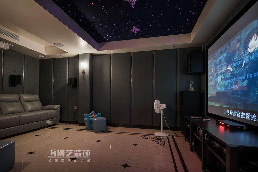 次臥背景以木飾面與印花壁紙作結(jié)合,以簡飾繁,尊貴典雅的氣氛撲面而來,層次遞進(jìn)的藍(lán)色提升了空間的層次感,奢華而靜謐的氣息充滿家居。