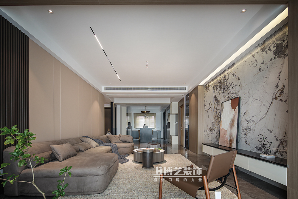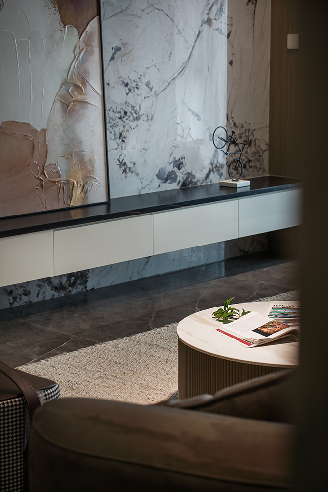 簡約設(shè)計的客廳,注入太妃糖的香甜,層層遞進(jìn)的色彩,散發(fā)著溫柔、細(xì)膩的氣質(zhì)。白色大理石凝聚視覺焦點,點綴空間提升高級感。