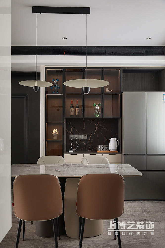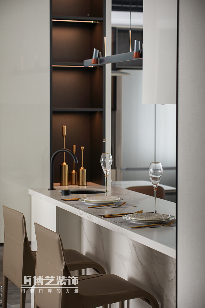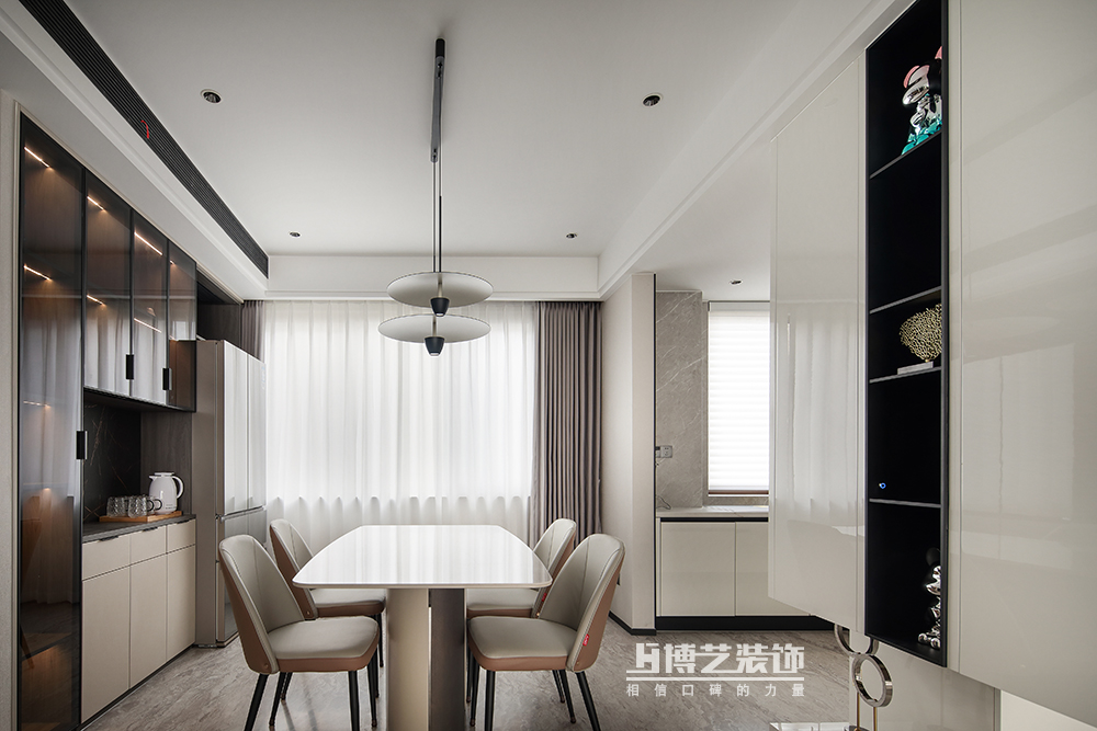 餐廳采光優(yōu)渥,室外的光線自然引入,白色為主的空間自帶濾鏡,柔和的環(huán)境更易拉近家人見(jiàn)的距離,讓就餐的氛圍更溫馨和諧。