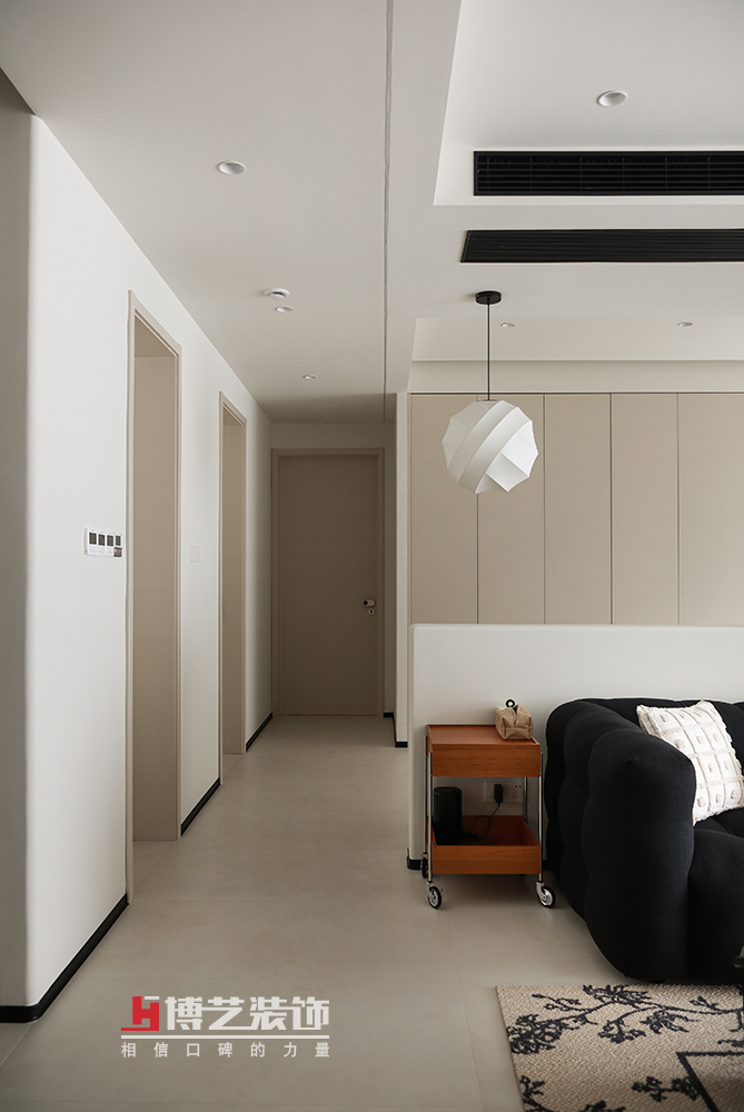 空間錯落有致,入戶玄關(guān)連通著客餐廳與書房,多個功能區(qū)共存于同一空間,在布局上各有乾坤,卻又互不影響。全屋無主燈設(shè)計,拉升了整個空間感,最大程度引入自然光,讓光影訴說不一樣的故事。