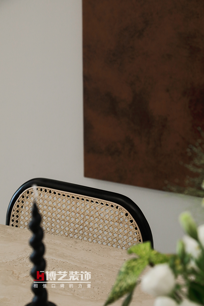 人生最愜意之事莫過于家人歡聚,享受四季三餐,圓的花瓶,圓的燭臺,圓的杯子,甚至連餐椅細(xì)節(jié)之處都飽含著滿是團(tuán)圓相思意的圓形圖案,愛意與溫情在空間中蔓延。